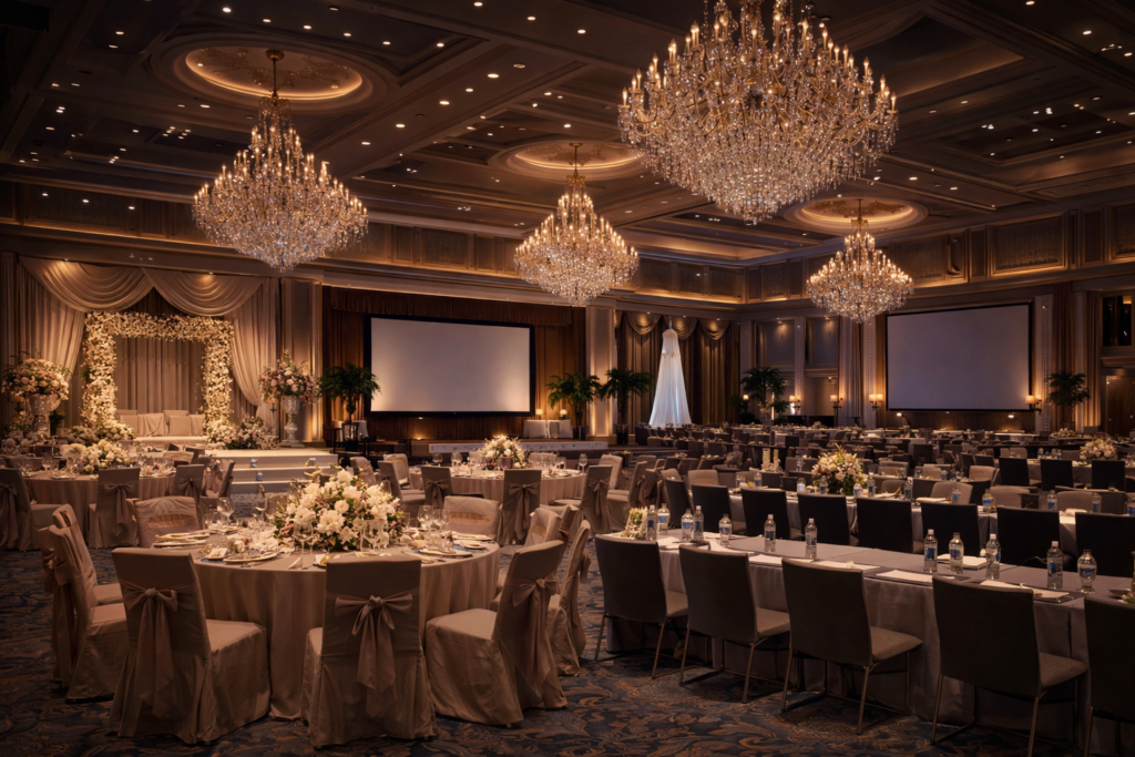 adaptable layouts, the ballroom can be customized to suit both intimate functions and large-scale events. Advanced lighting, acoustics, and seamless service ensure a flawless experience from start to finish.